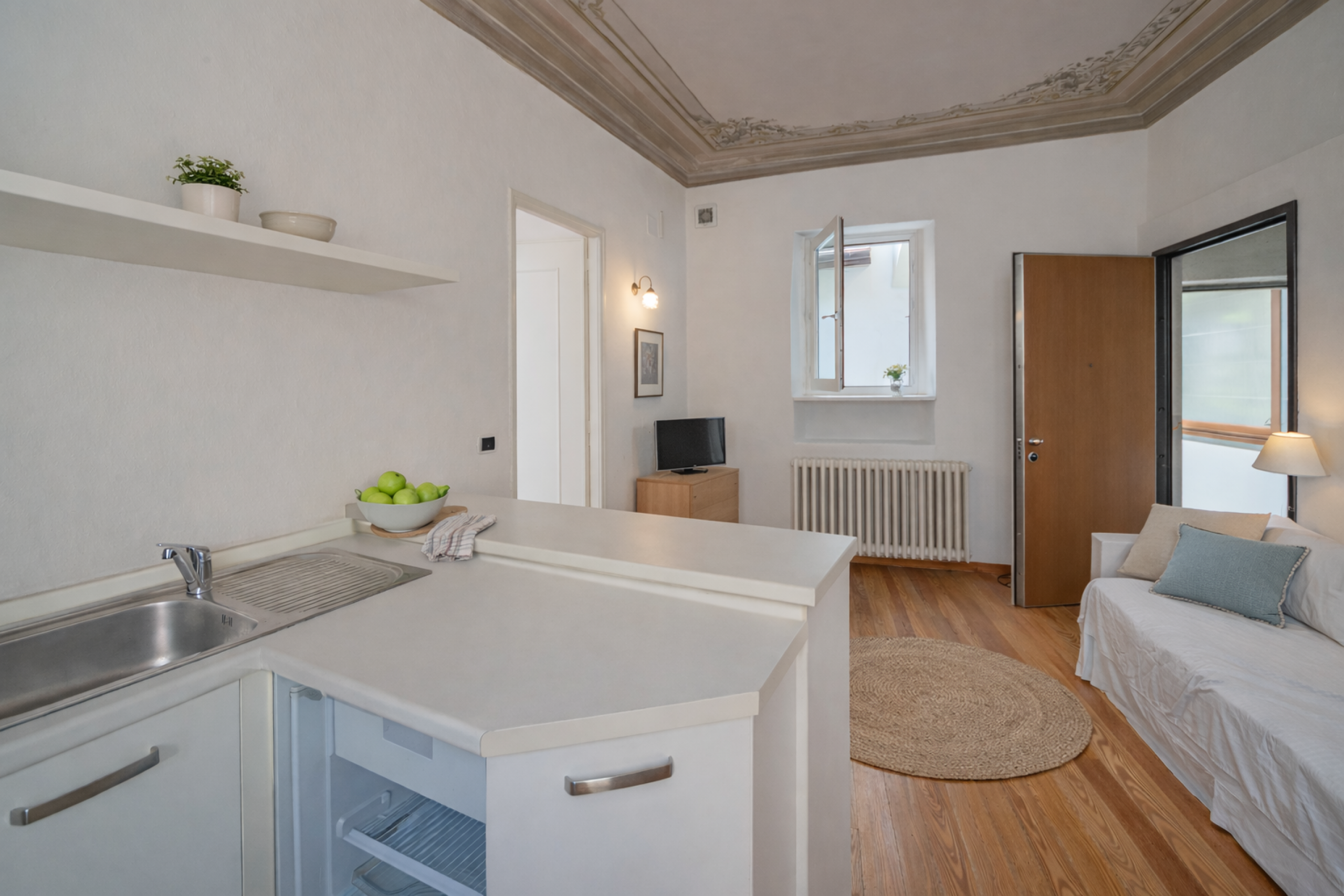 Cucina/soggiorno, camera e bagno con terrazzo.