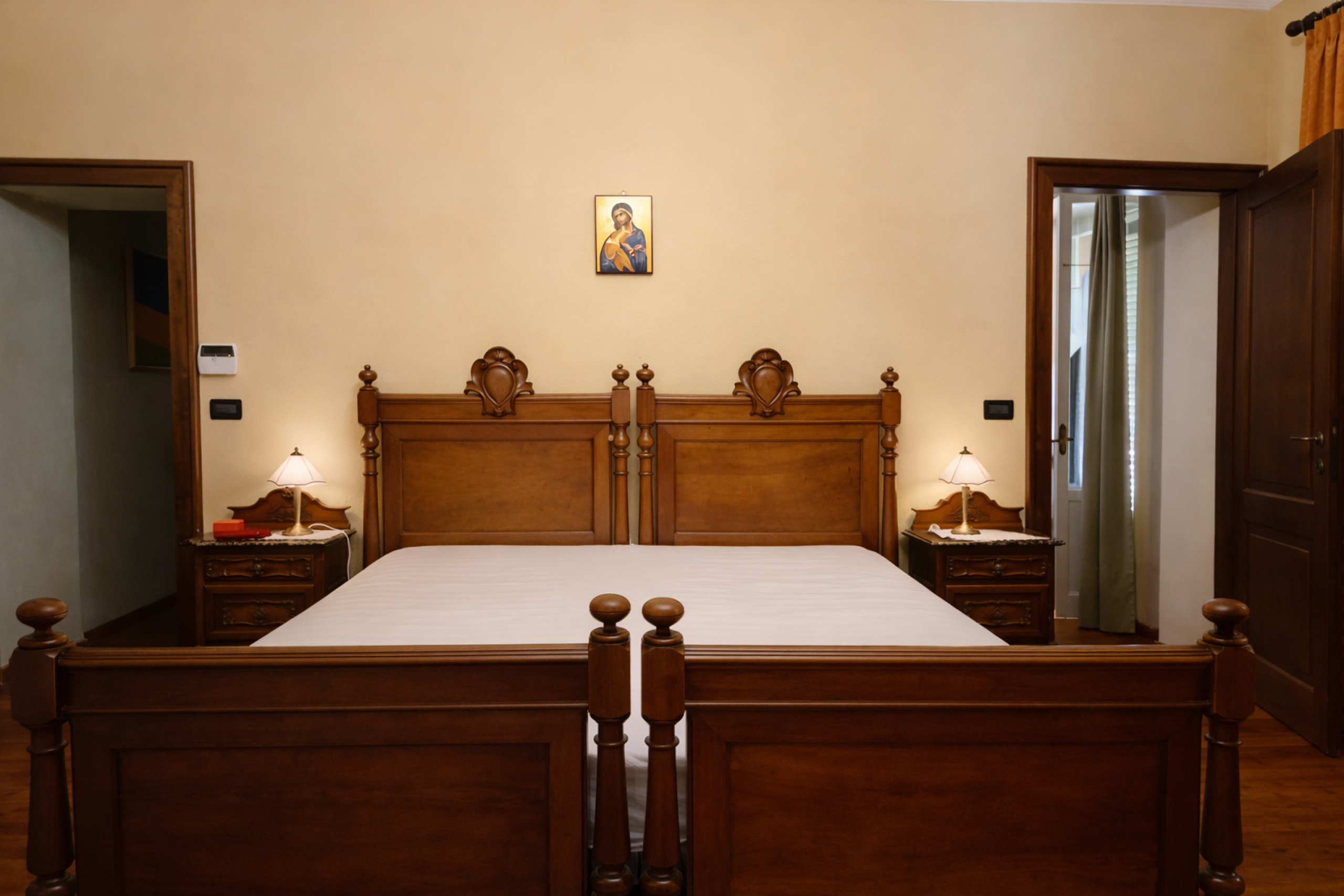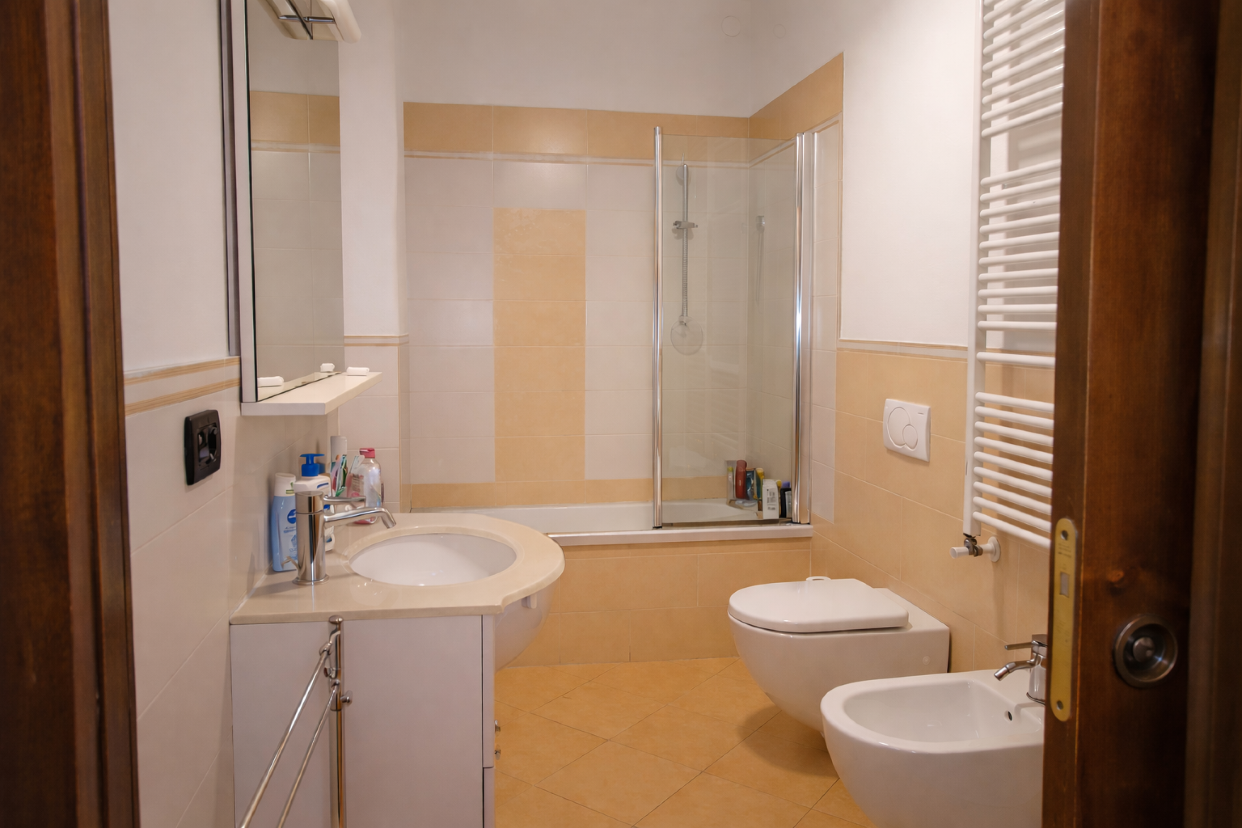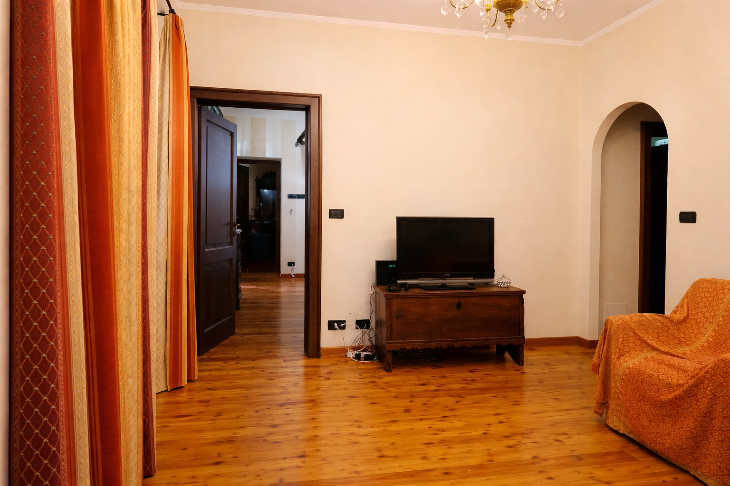 Appartamento composto da ingresso in soggiorno, cucina, due camere e bagno.