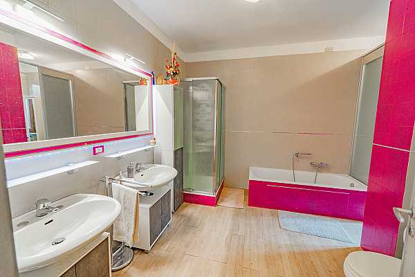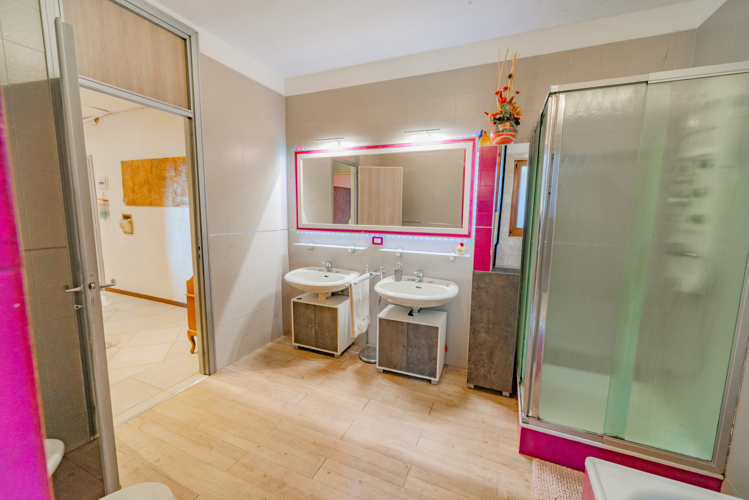 Il bagno? Una vera coccola quotidiana. Grande, comodo, con vasca, doccia e doppio lavello: niente più file al mattino o spazi risicati, qui ognuno trova il proprio tempo. Lo spazio è così generoso da includere una rientranza perfetta per la lavanderia: lavatrice e detersivi restano nascosti e il bagno rimane impeccabile. E non mancano le comodità che fanno davvero la differenza: riscaldamento autonomo, aria condizionata, infissi doppi in pvc, ascensore fino al piano, privo di barriere architettoniche, posto auto e cantina. Piccoli dettagli che ti regalano una vita più semplice e organizzata.