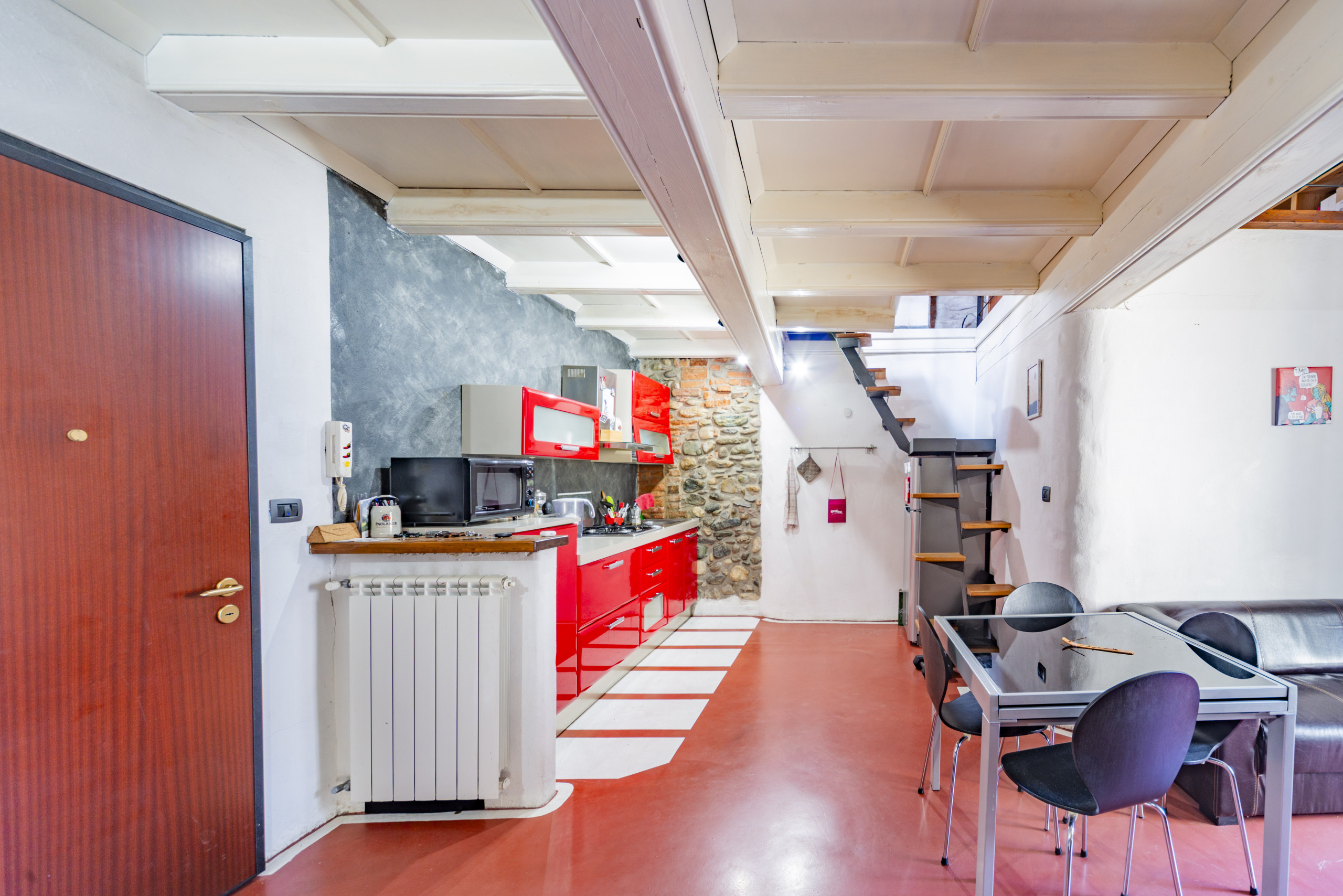 Immagina di possedere un appartamento che racconta una storia attraverso i suoi dettagli: travi in legno a vista, pareti in pietra e una cucina moderna dai colori vivaci. Questa combinazione unica attira inquilini che cercano un ambiente accogliente e distintivo.
