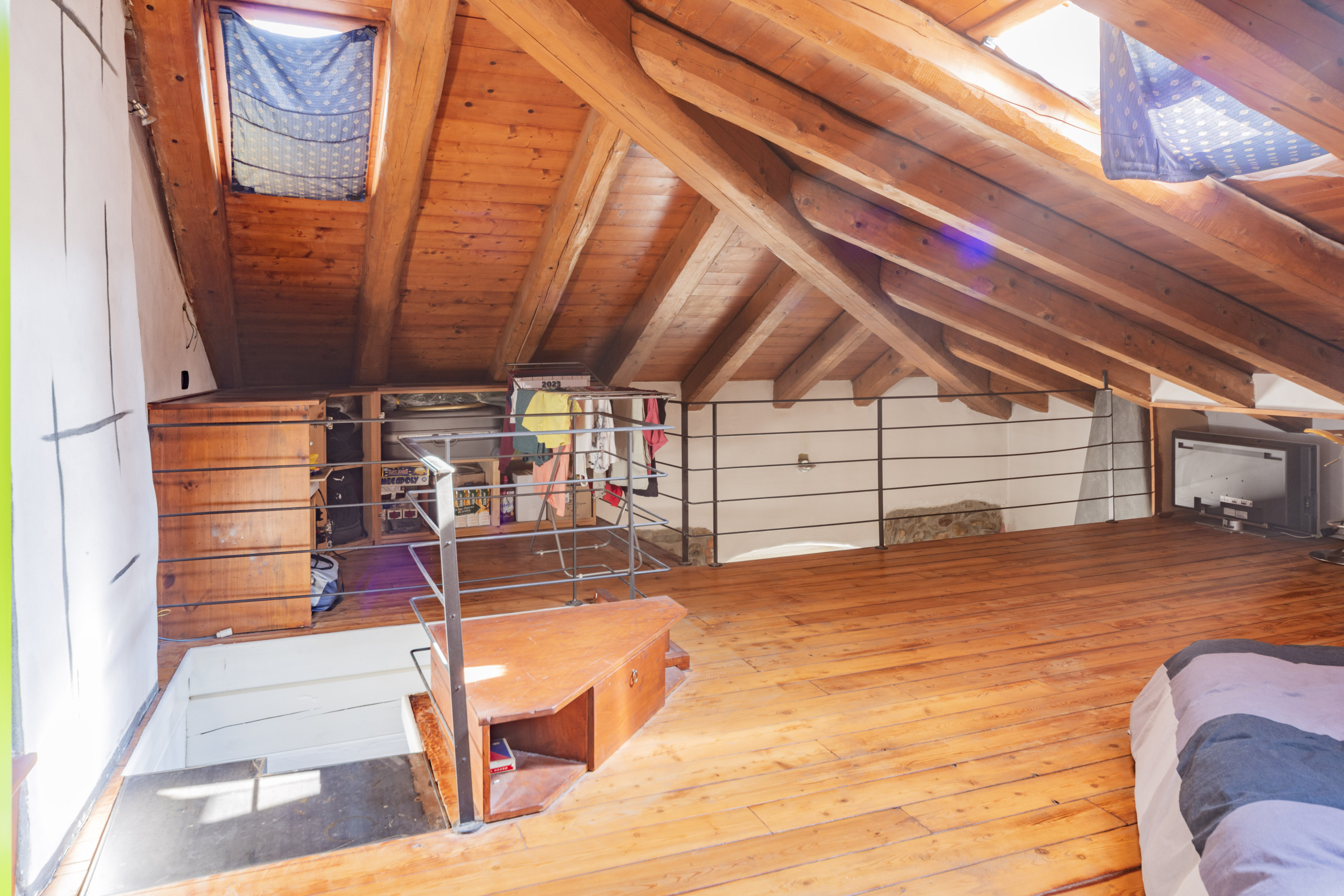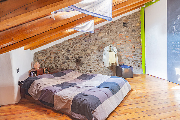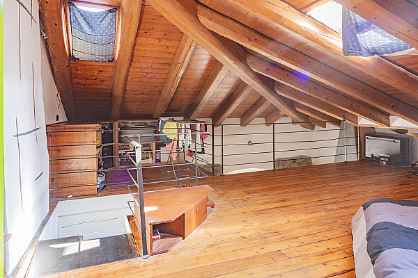 La disposizione su due livelli offre uno spazio ben organizzato e funzionale. Al piano terra, un open space luminoso invita a momenti di socialità, mentre la zona notte mansardata al piano superiore garantisce tranquillità e privacy.