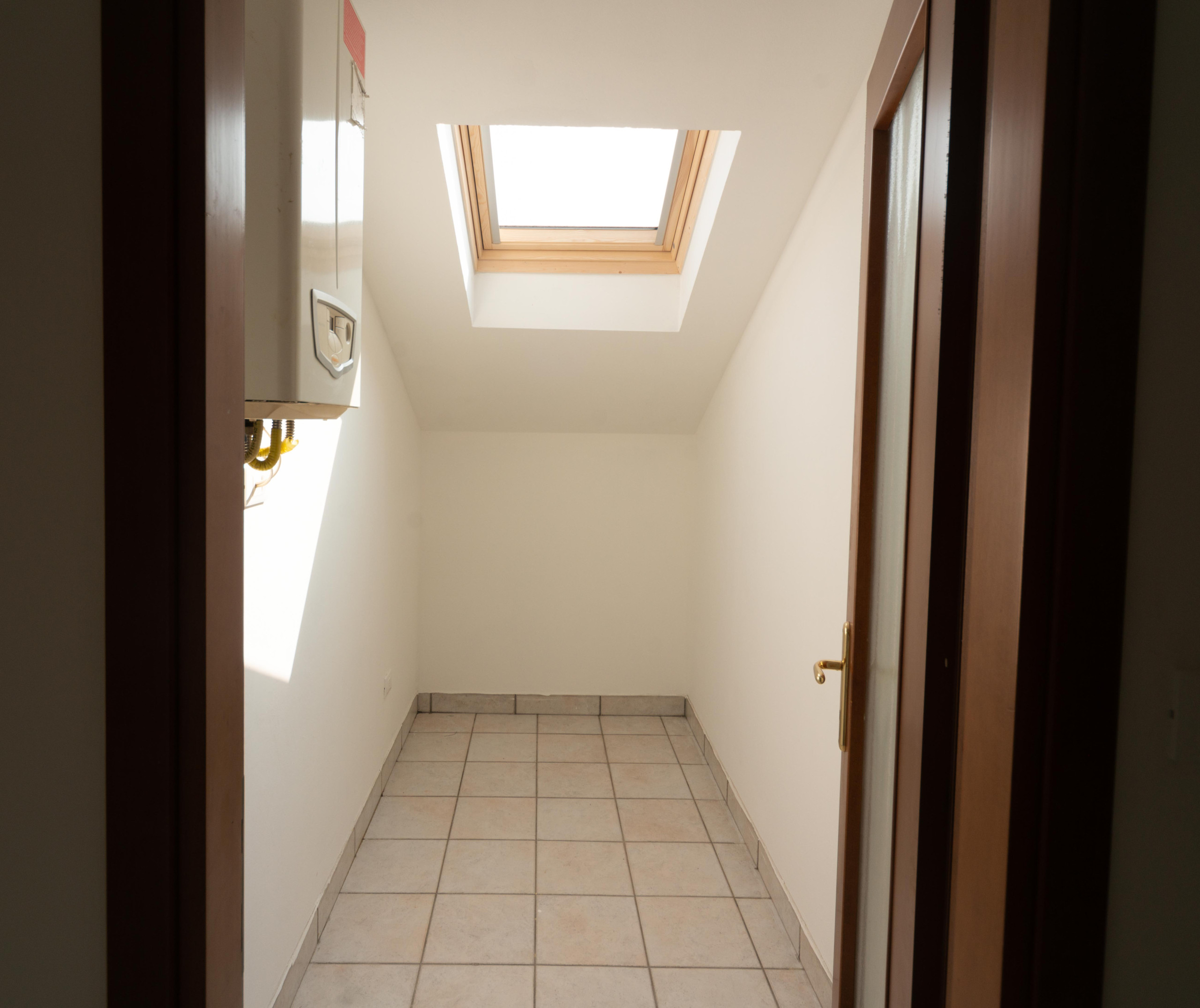 Tutto parla di tranquillità, pulizia, ordine. C’è un’atmosfera leggera, quasi ovattata: merito del silenzio che solo un appartamento all’ultimo piano sa regalare.