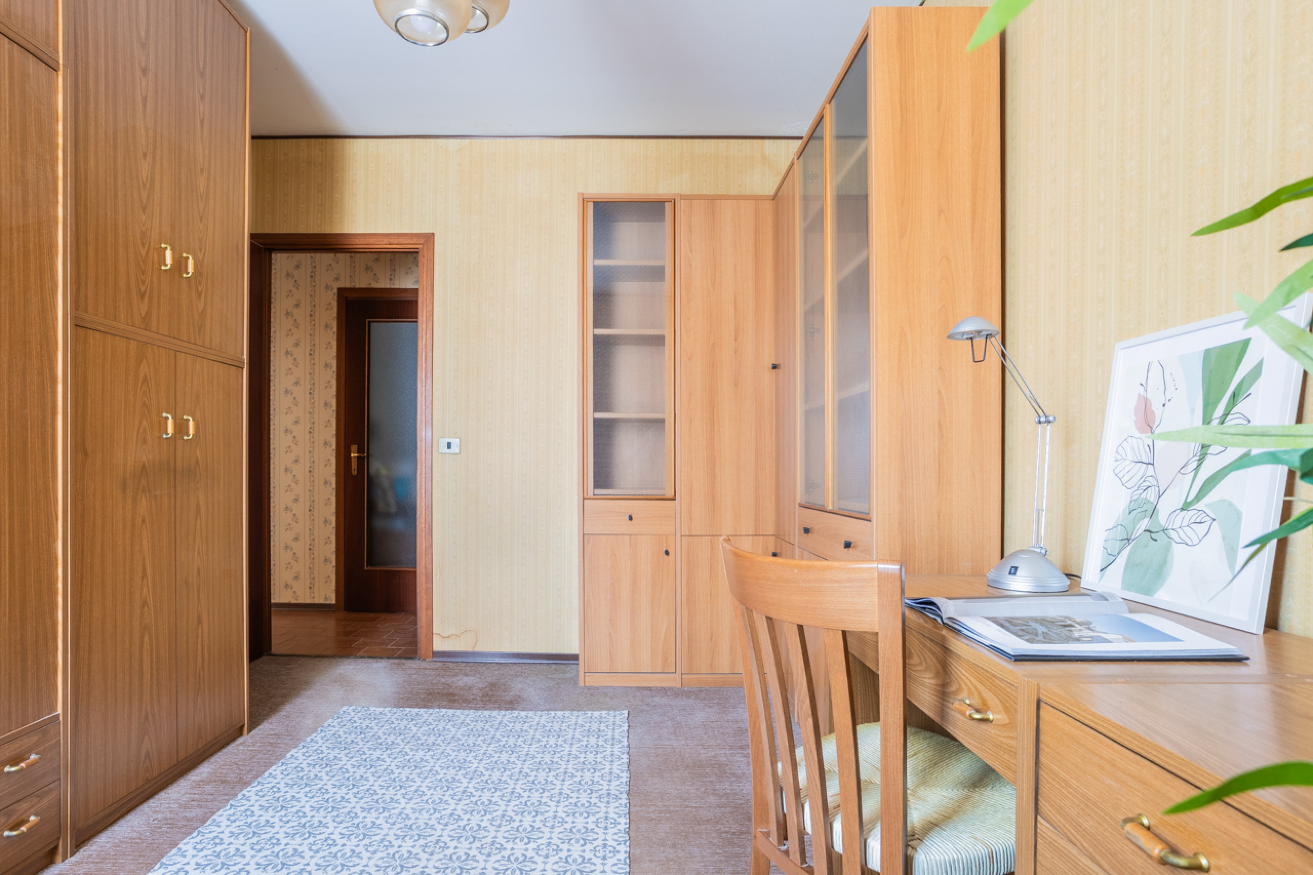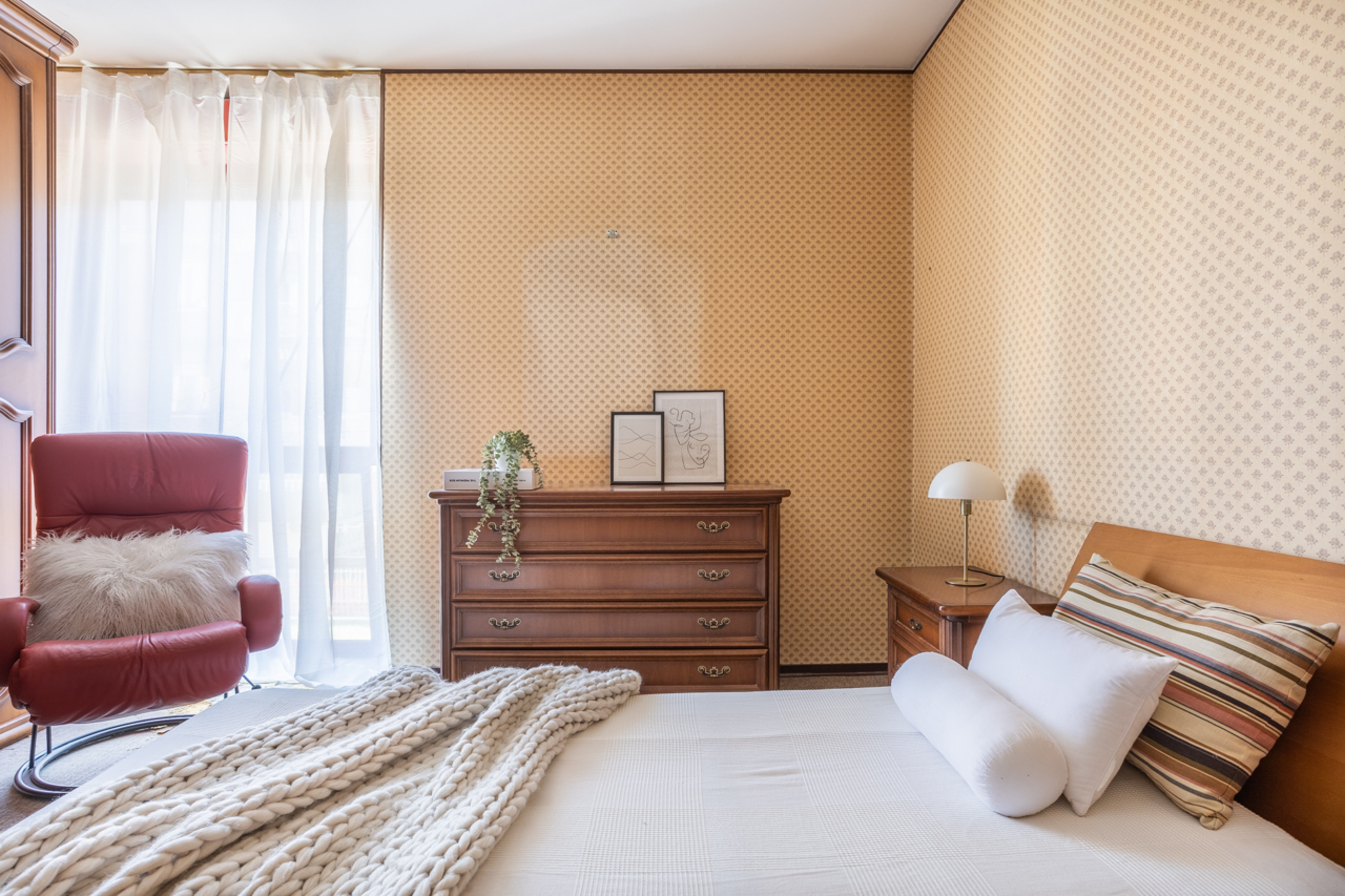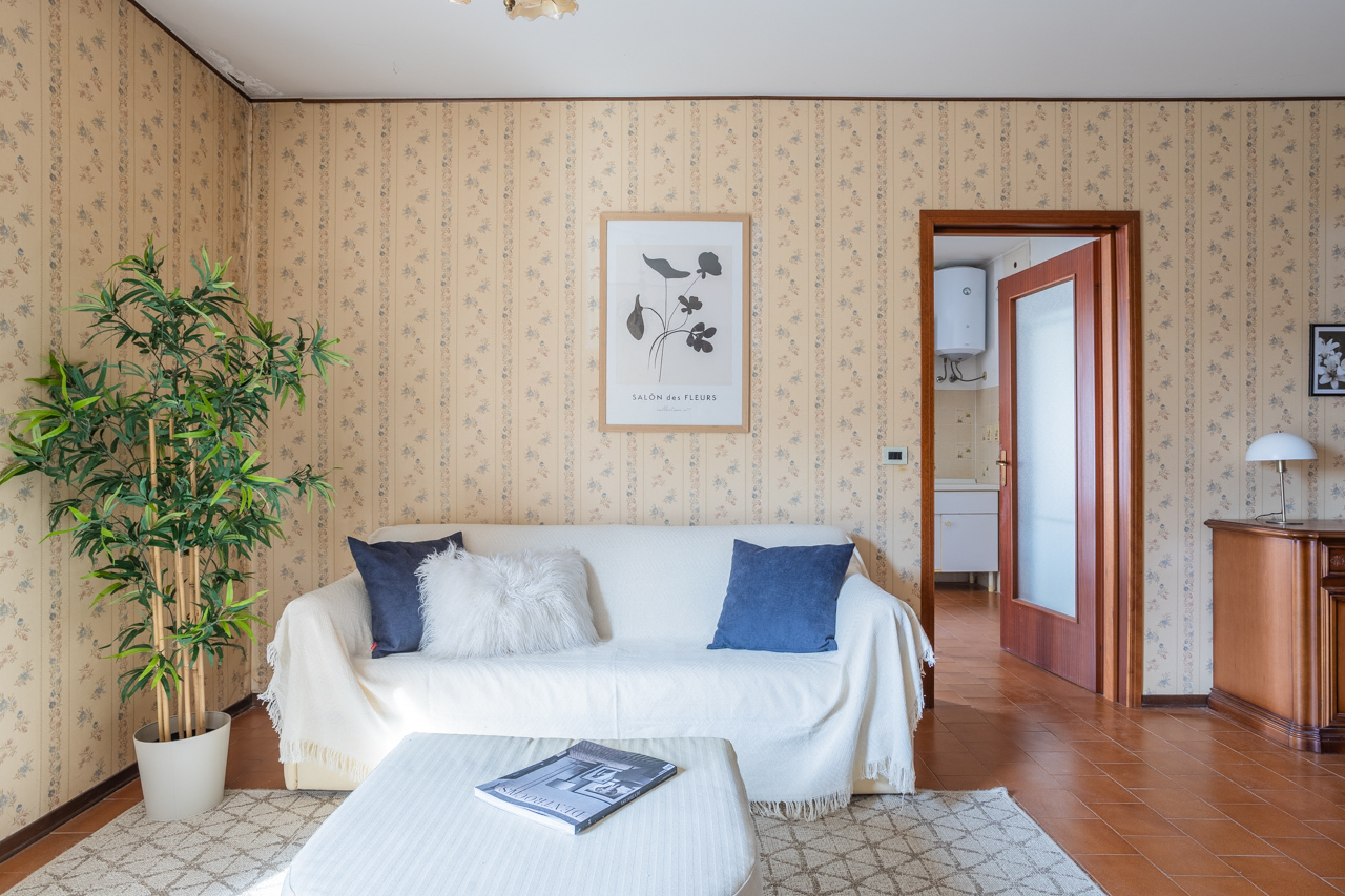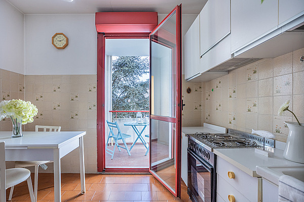 L’appartamento ha tutto lo spazio che serve per iniziare una nuova vita. Il soggiorno è ampio e luminoso, pronto per accogliere il divano su cui rilassarti dopo il lavoro o il tavolo intorno a cui riunire amici e famiglia. La cucina separata ha accesso diretto a un terrazzino coperto, uno spazio perfetto per fare colazione all’aria aperta o per goderti un momento di tranquillità con un buon libro.