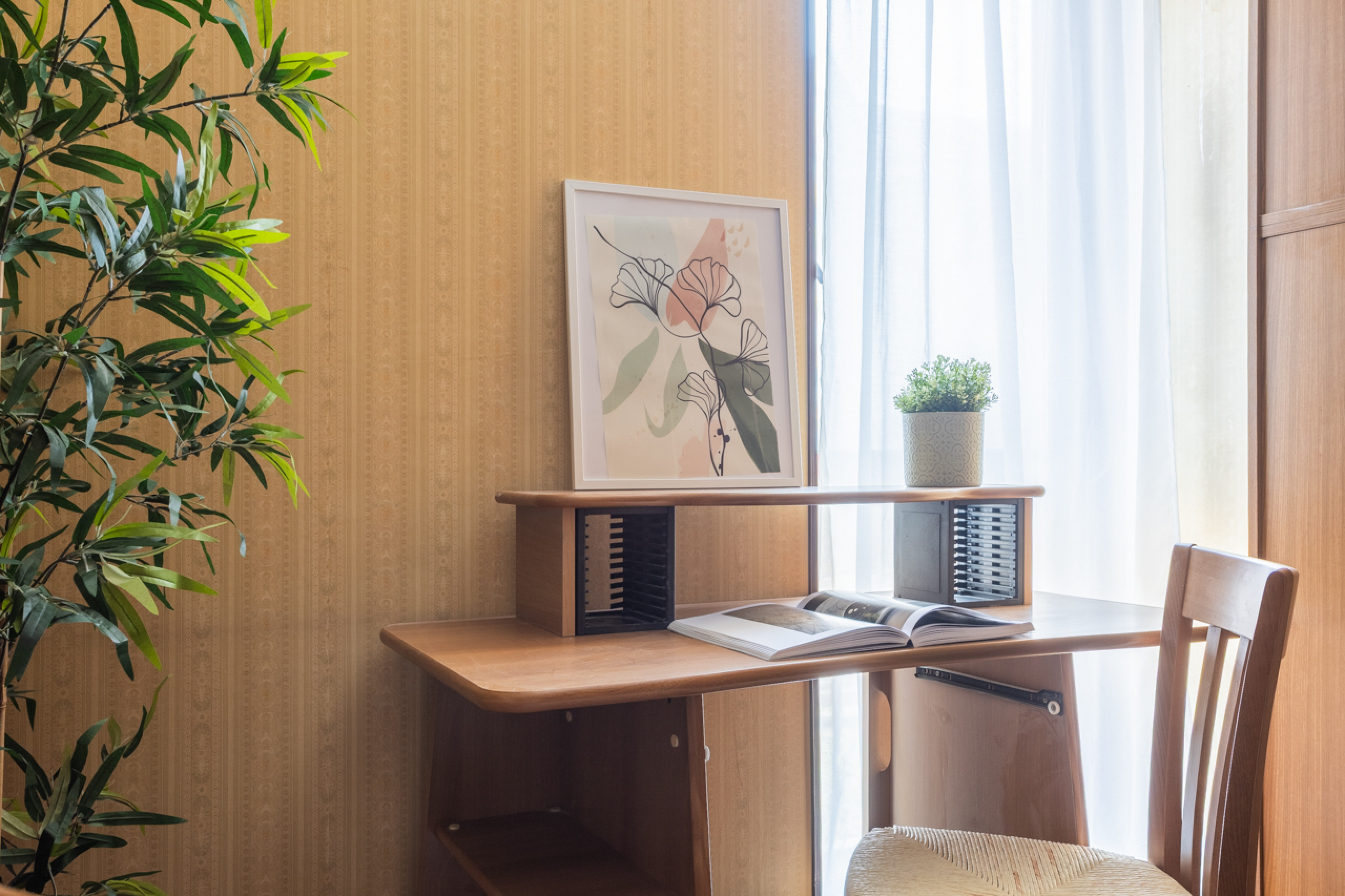 Le due camere ti danno la libertà di organizzare gli spazi come vuoi: la camera principale per te e il tuo partner, e una seconda stanza che può essere destinata a uno studio, una cameretta per un futuro bambino o una stanza per gli ospiti. Il bagno, con impianto di aspirazione condominiale, garantisce sempre un ambiente fresco e funzionale.