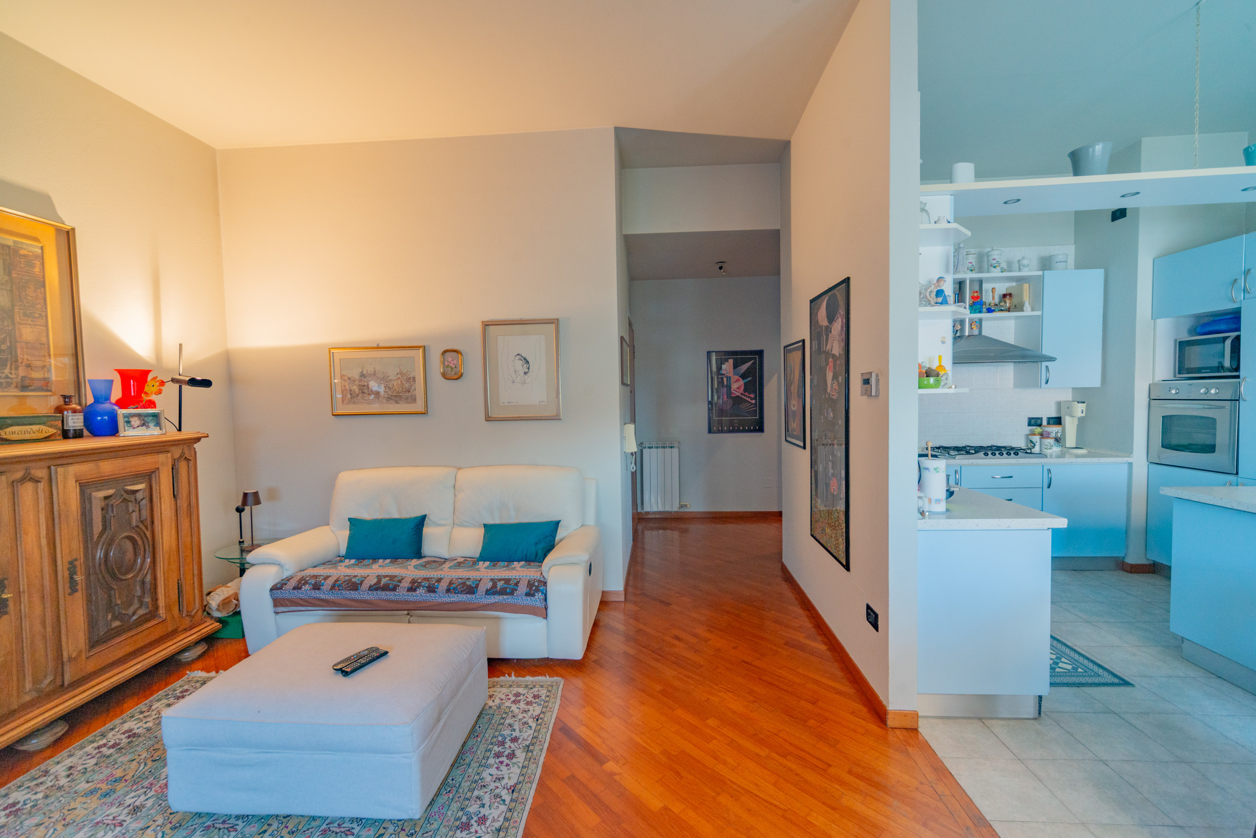 La luce entra da ogni angolo grazie alla tripla esposizione, accarezza il parquet caldo e naturale e disegna atmosfere che fanno sentire subito a casa.