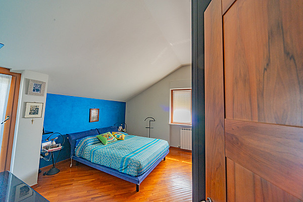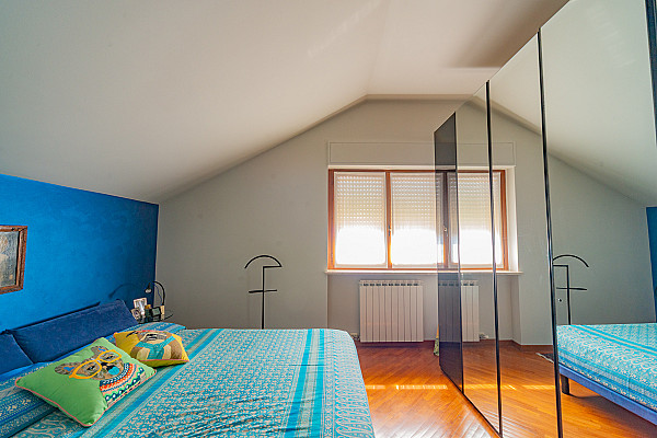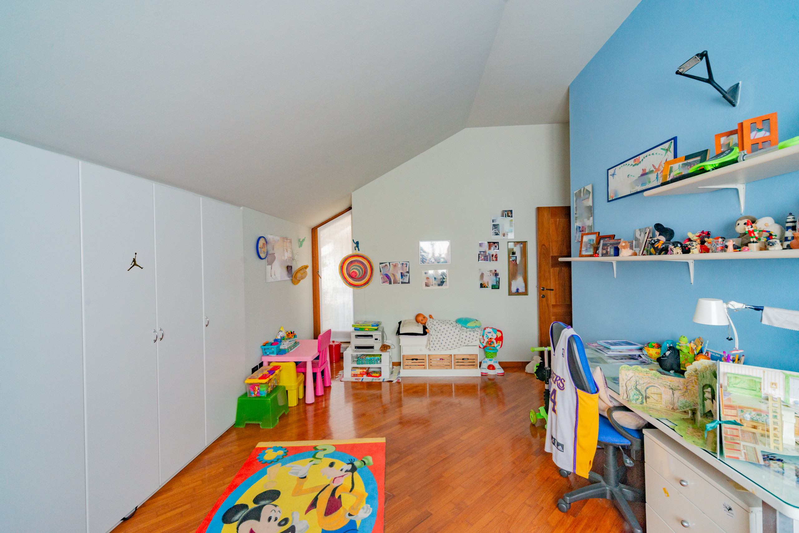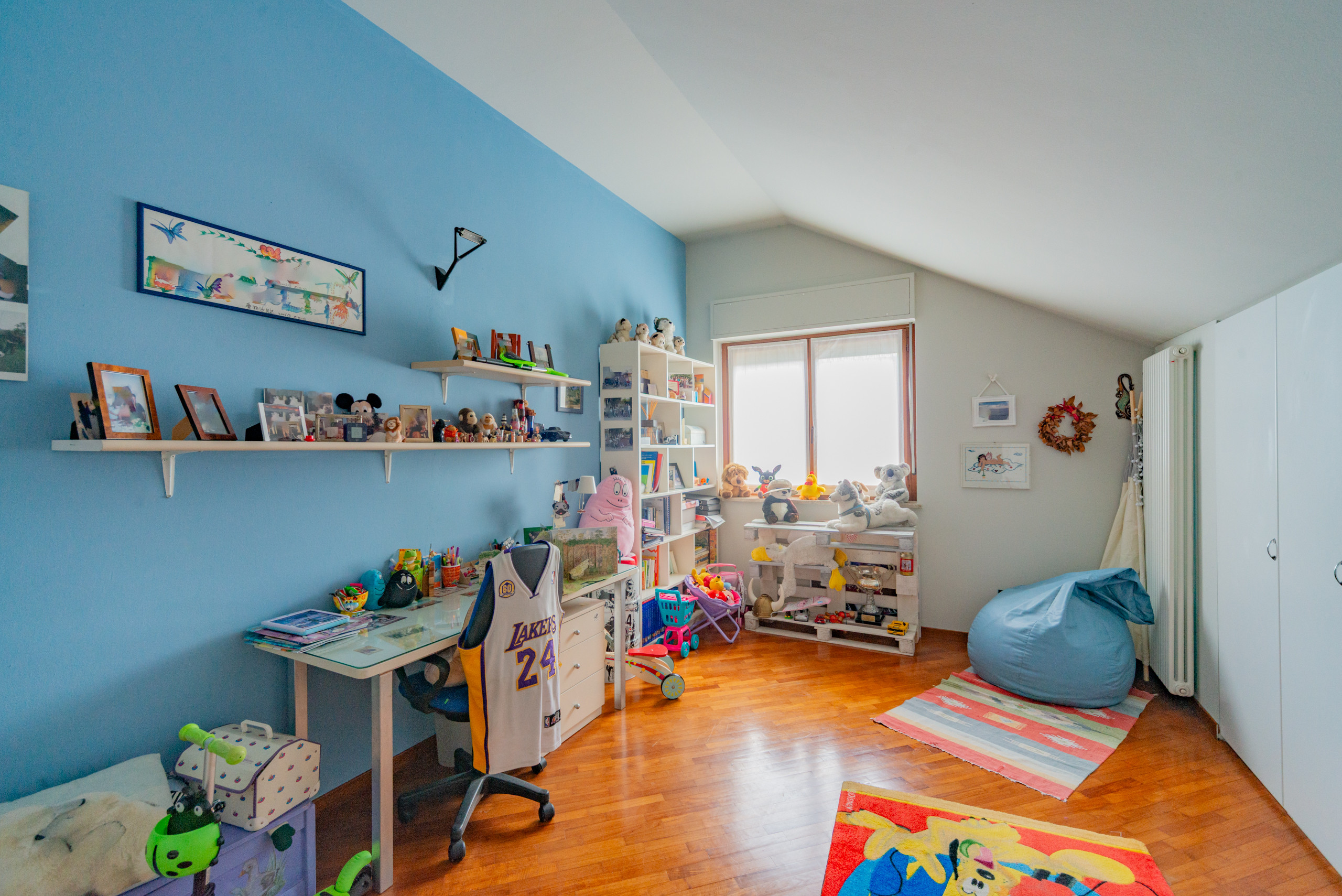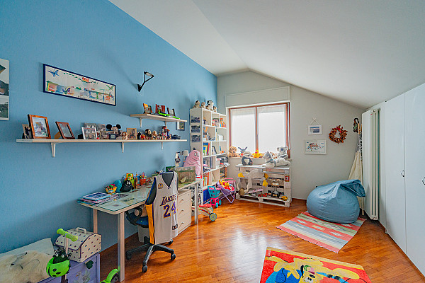 La cameretta, oggi piena di giochi, libri e colori, racconta storie di crescita felice. La camera matrimoniale, con i suoi toni rilassanti, è un rifugio dove staccare e ritrovare calma.