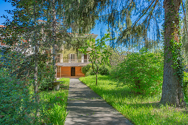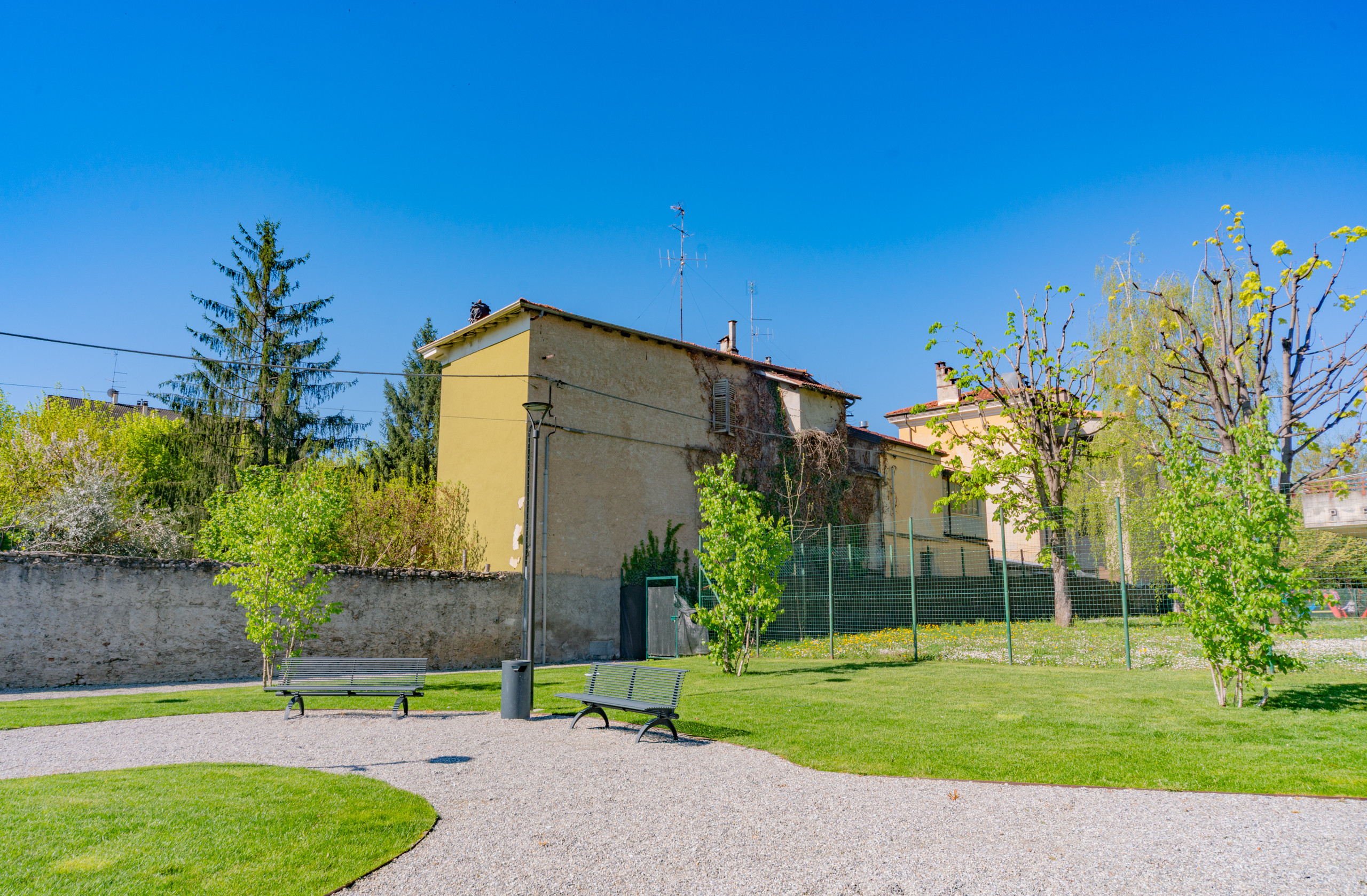 Qui c’è spazio per immaginare i primi giochi all’aria aperta dei vostri bambini, tra erba e vialetto, in tutta sicurezza. C’è spazio per un cane che corre felice, libero. C’è un portico coperto da vivere come meglio preferite: la colazione della domenica con la luce che filtra tra le foglie, un pranzo lento all’aperto con gli amici, un aperitivo improvvisato a fine giornata quando il cielo si fa arancione.