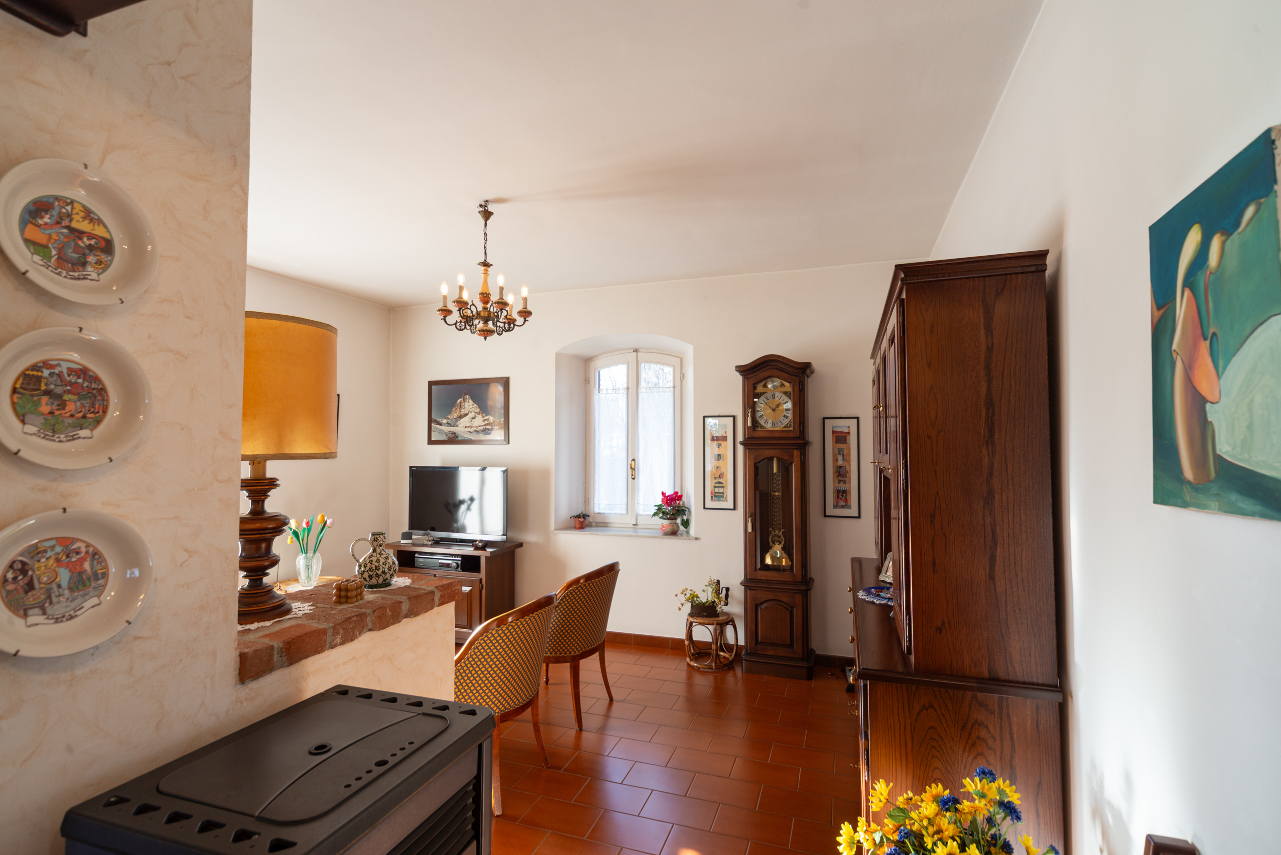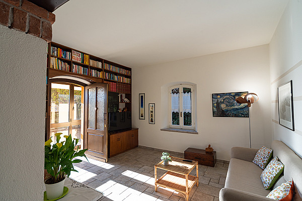 Il soggiorno, caldo e accogliente, con la stufa a pellet, invita a ritrovarsi nelle sere d’inverno. Il giardino offre libertà ai bambini, tranquillità ai nonni, momenti all’aperto per tutta la famiglia. È lo spazio dove nascono i ricordi più belli.
