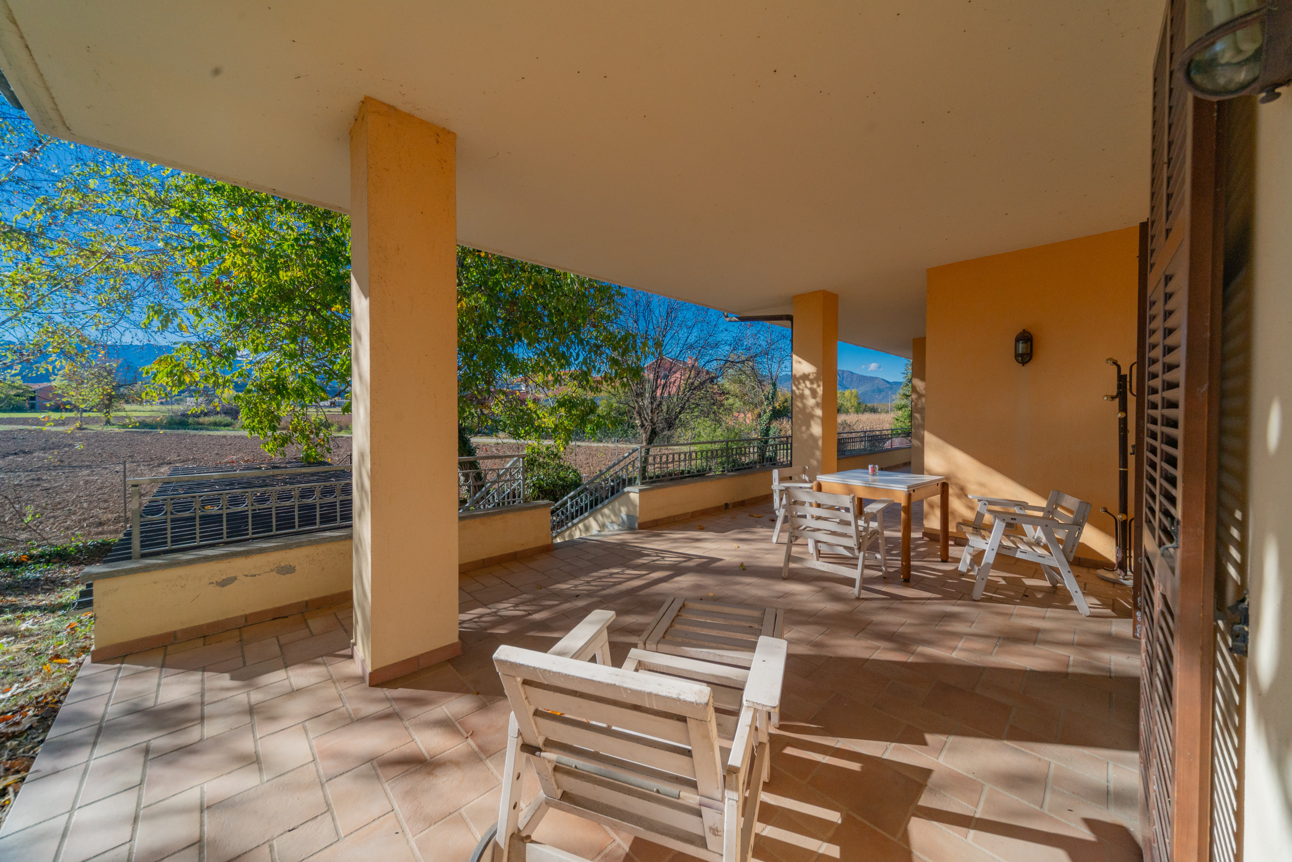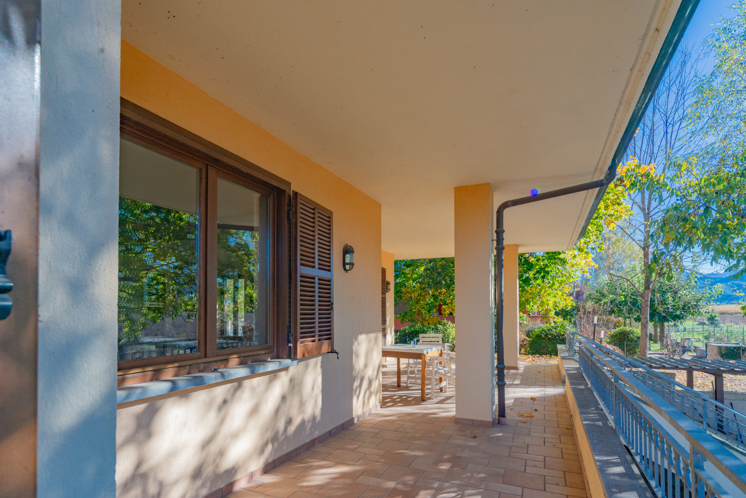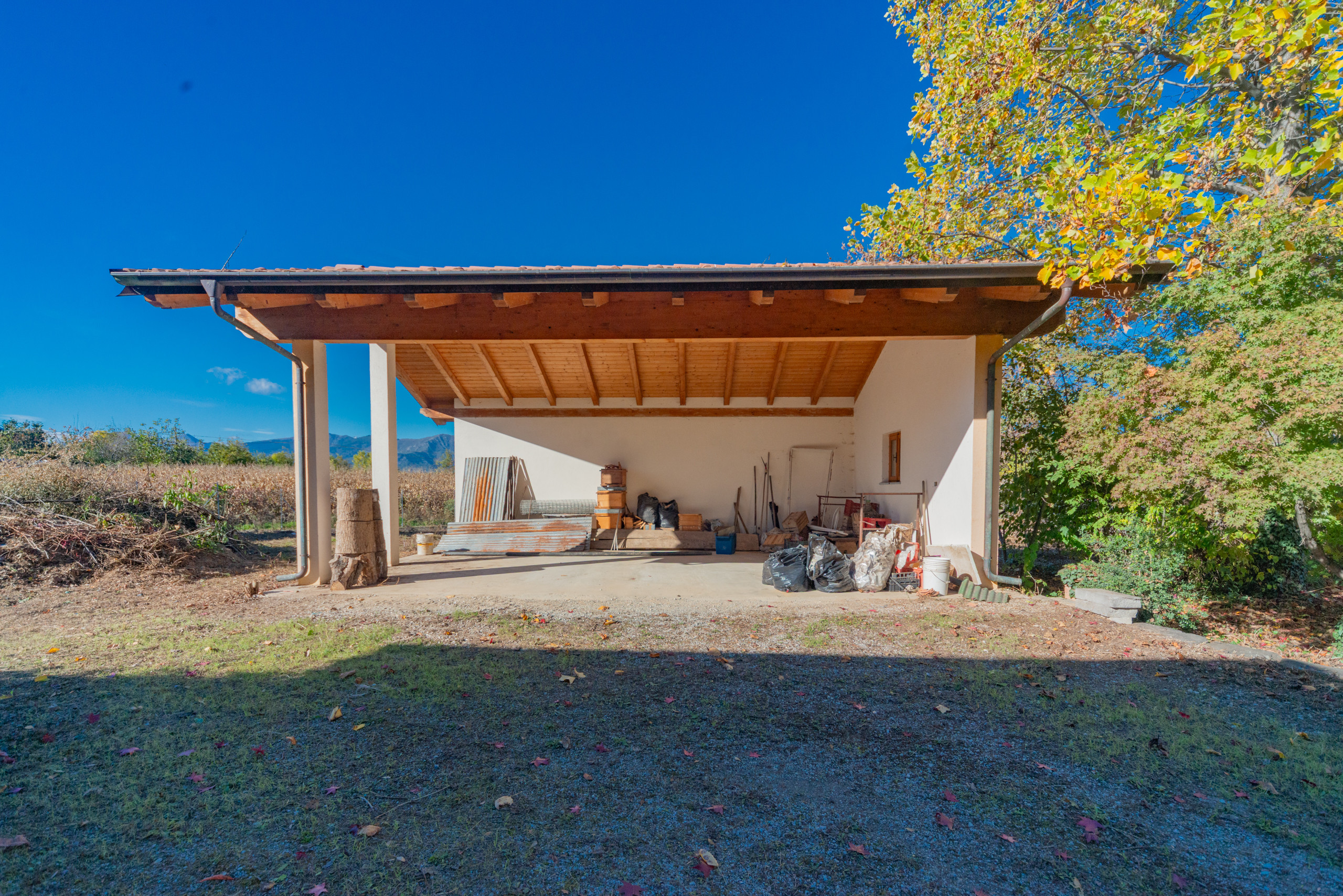 Il portico coperto è pronto per le cene estive, il giardino è il luogo dei giochi, dei brindisi, delle chiacchiere che si allungano fino a sera.