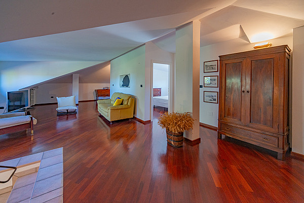 Gli spazi ampi accolgono la vita di famiglia con naturalezza: una cucina che invita a cucinare insieme, un salotto dove i bambini costruiscono tende e i genitori si rilassano dopo cena, camere luminose e accoglienti che profumano di quiete.
