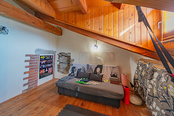 Hai mai sognato una casa che non fosse solo “una casa”? Un luogo che ogni giorno ti sorprenda con la sua struttura inaspettata, con angoli segreti, con scale che sembrano condurti in piccoli mondi diversi? Questa non è una semplice abitazione: è un’avventura quotidiana, fatta di dettagli, legno, pietra viva e luce.