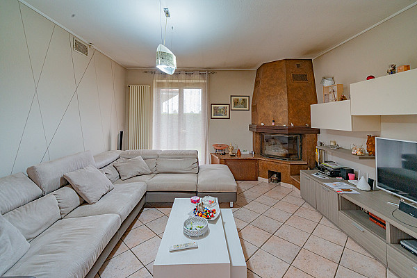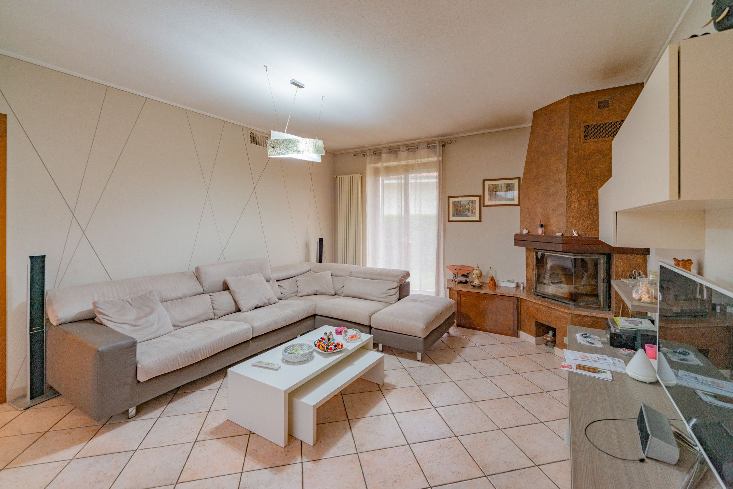 La casa è su un unico piano — finalmente potrai dire addio a sali e scendi con bambini, spesa o lavatrici — e offre tre camere vere, luminose, accoglienti. Due bagni, così che le mattine non inizino più con “chi va prima?”. Una zona giorno calda, spaziosa, con un camino che rende magico ogni inverno.