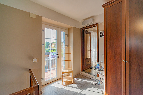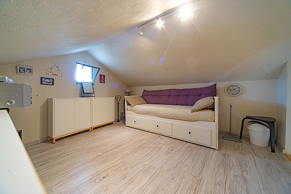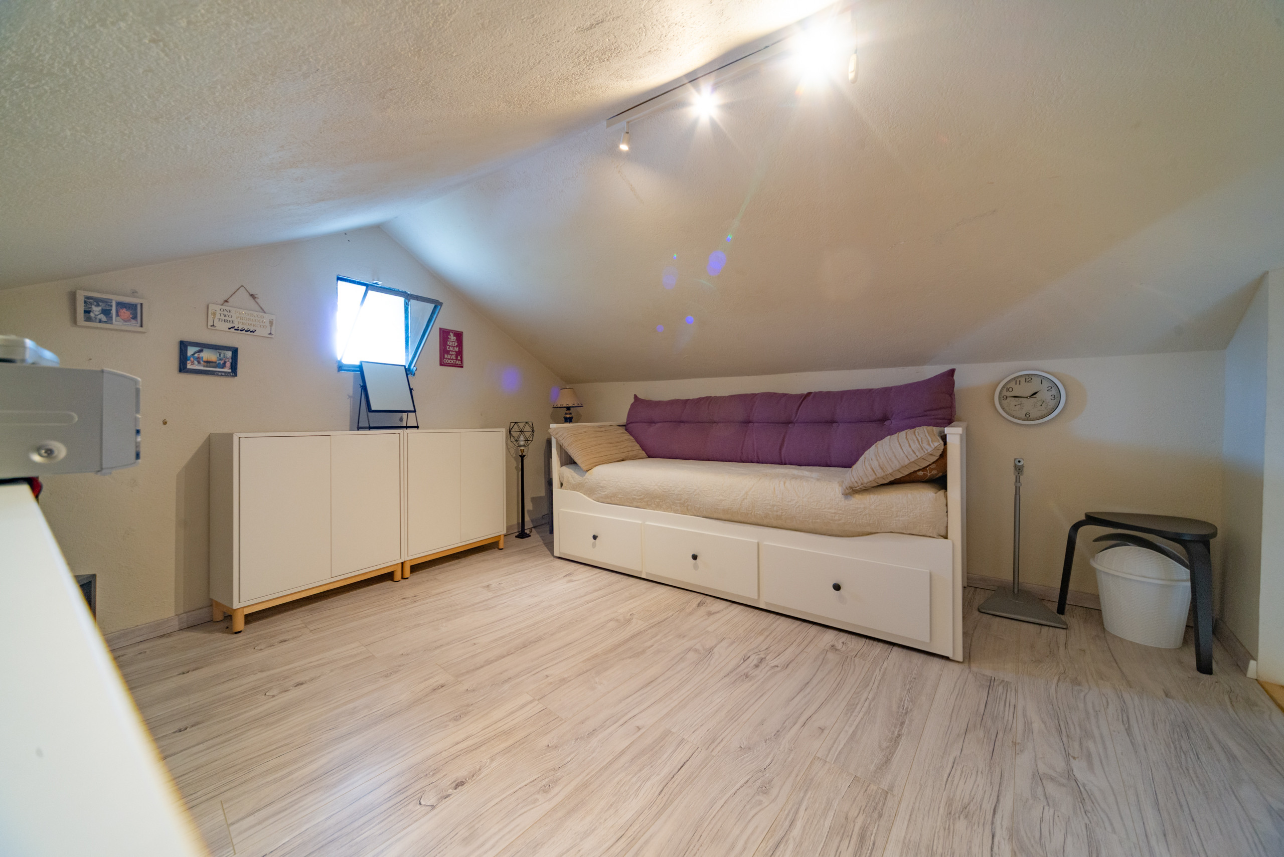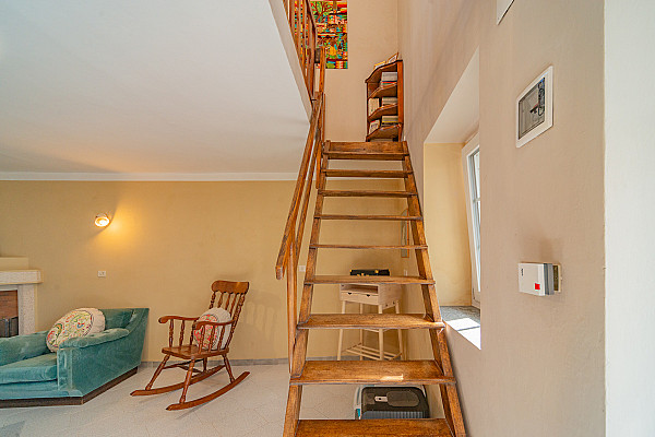 Due livelli ben separati: zona giorno al piano terra e zona notte al piano superiore con camera matrimoniale, bagno e uno studio.